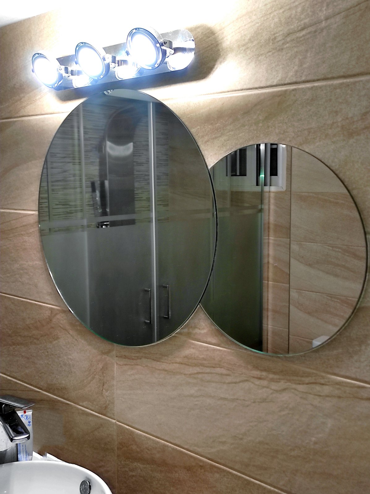 Δύο καθρέπτες κυκλικού και ημι-κυκλικού σχήματος, τοποθετήθηκαν σε τουαλέτα για να μπορείτε να έχετε άριστη ποιότητα αντανάκλασης καθώς και τον ιδανικό σχεδιασμό