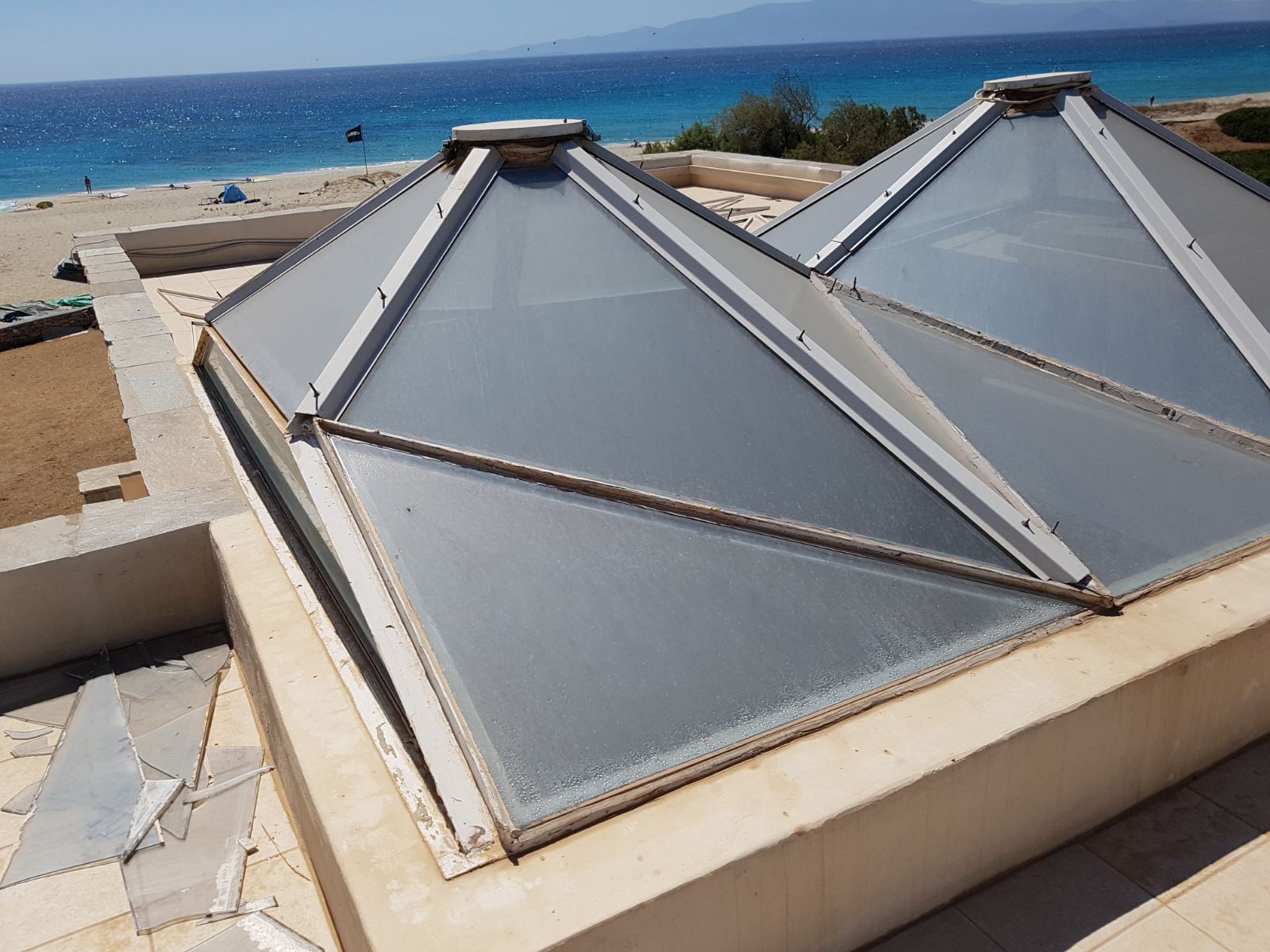 Έγινε πλήρης αντικατάσταση όλων των παλιών κρυστάλλων της οροφής και τοποθέτηση νέων διπλών κρυστάλλων ασφαλείας με μεμβράνη και τεχνολογία προστασίας από καιρικά φαινόμενα.