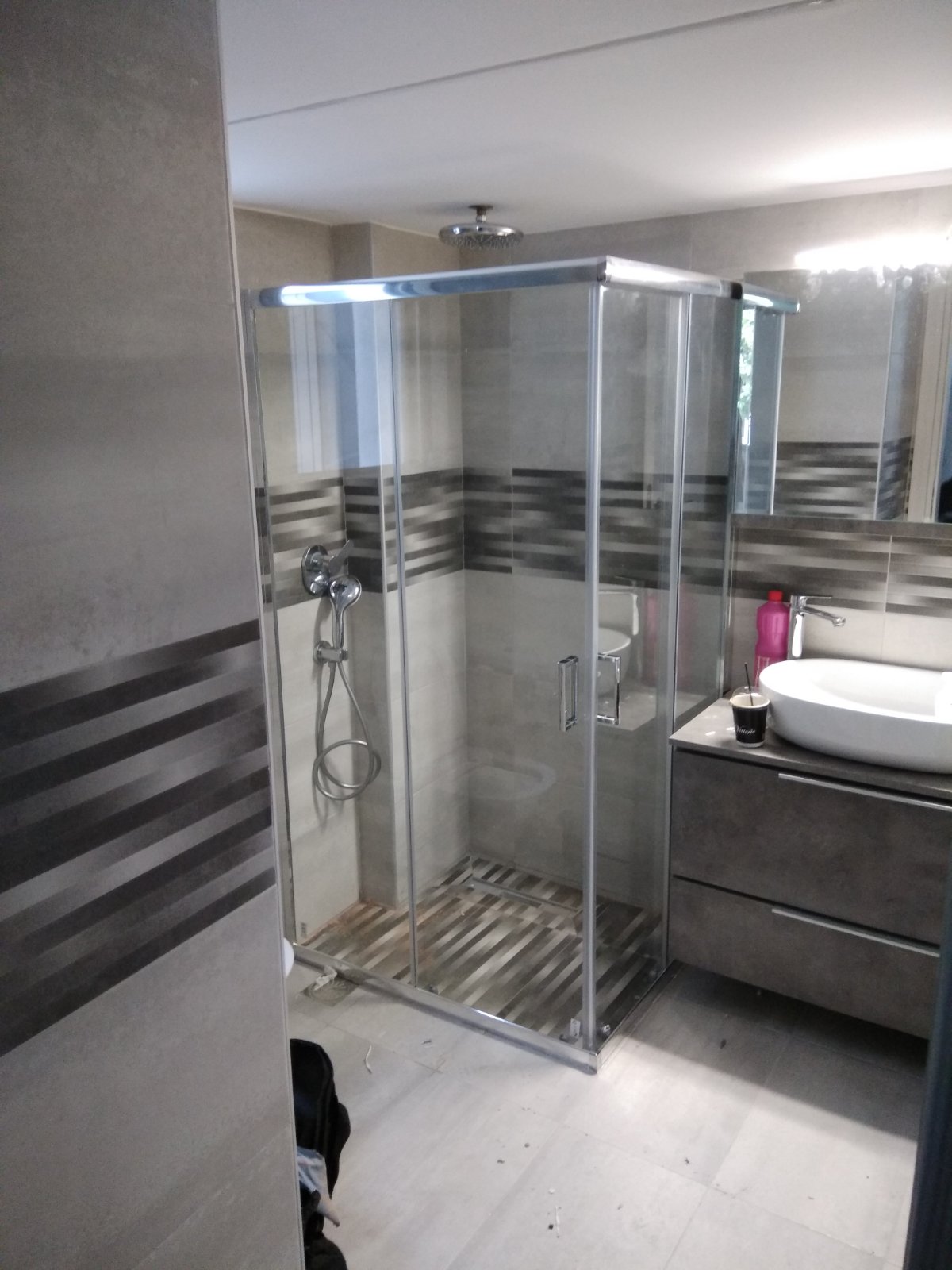 Γυάλινη κατασκευή καμπίνας ντουζ με κρύσταλλα με κατεργασία νανοτεχνολογίας για αποφυγή αλάτων και απολύτως ασφαλή. Μετά από μελέτη του χώρου και κατάλληλες μετρήσεις ώστε να ταιριάξει απόλυτα στο χώρο σας.
